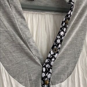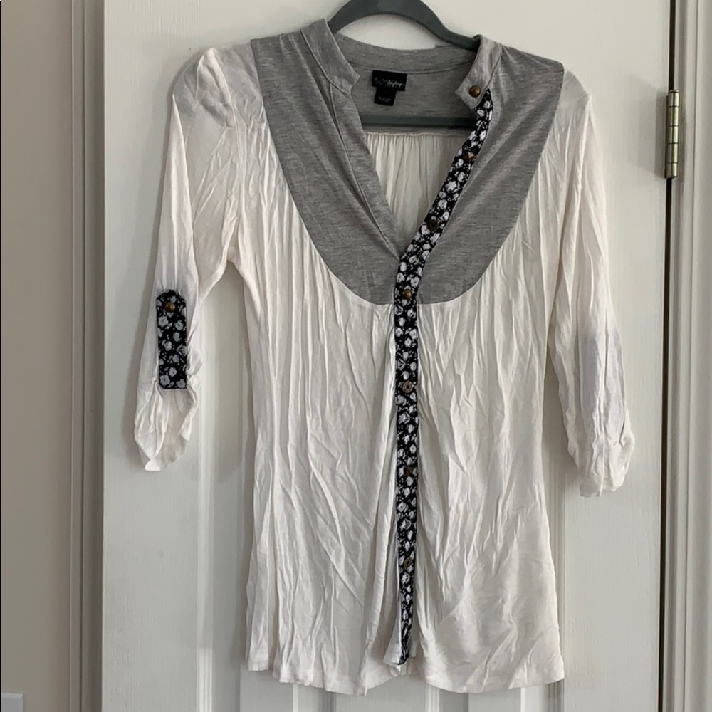 Cropped sleeves with buttons. Light, soft cotton. Fits closer to a medium.