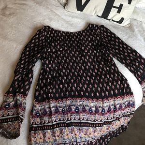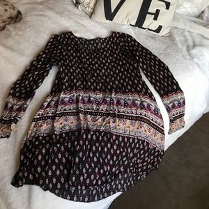 Adorable black, red & multi-color long sleeve tunic. Perfect for fall!! 🌟 Perfect condition. Size small, fabric has little to no give/stretch, so only consider if you’re true to small! Other than that, great item!! 😇 I wore this to work often with black leggings & dressy boots!!