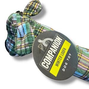 Multipet Dog Squeaky Stuffed Toy Winter Loofa Plush Green Plaid Holiday 11"