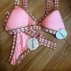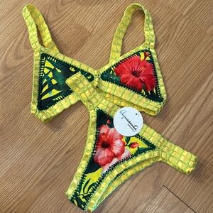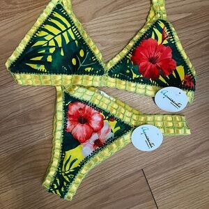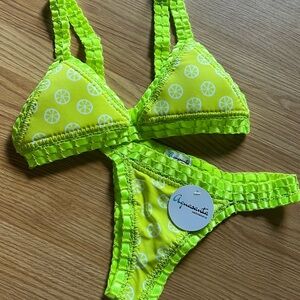 Stand out at the beach with this vibrant neon green bikini set. Perfect for making a bold statement. Handmade! Swipe for more colors!