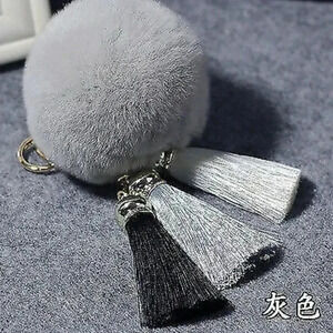 Fuzzy Fur Pom Pom Keychain Key with Tassels. Description: