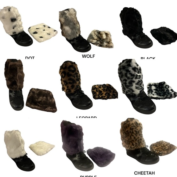 Short faux fur leg warmer boot covers in multiple colors. Elastic band tops fit small to medium calves. 7” tall. Brand new boutique overstock.