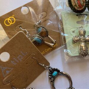 Elegant silver earrings featuring a striking turquoise accent. Perfect for adding a touch of color to any outfit.