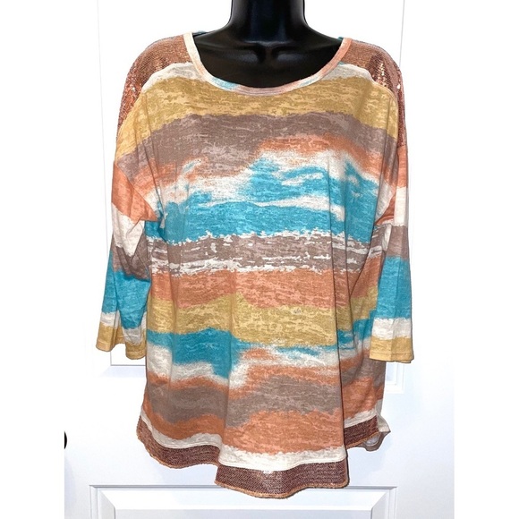 Multiples brand, brown and turquoise blue sequin top Size medium Measurements: 23 inches armpit to armpit 28 inches in length