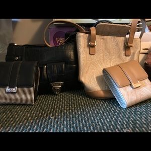 $25 RealTree set, $25 Coach Red Alligator purse, $15 Guess Grey Leopard, $10 Tommy Hilfiger, $10/ea Liz Claiborne purses