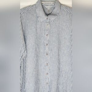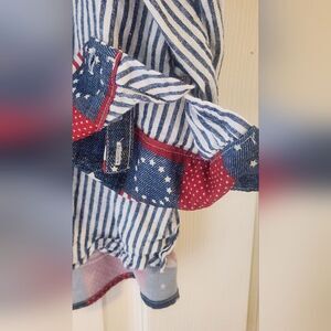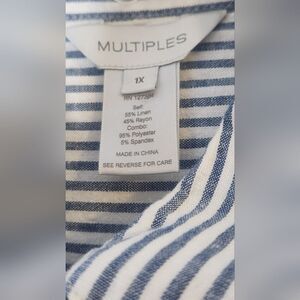 Multiples 1X Striped LINEN Blend American Star Patriotic Bac Lngslv Women Shirt