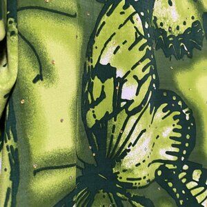 lime green designs w/beautiful large butterflies all around, along w/some