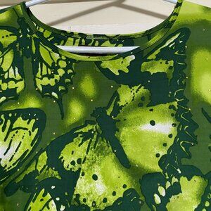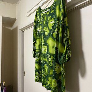 Multiples, 3/4 length sleeve, butterfly tunic in light & dark greens, size 1X