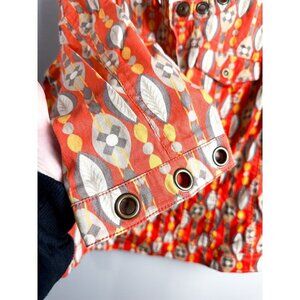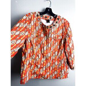 Multiples 60s/70s Printed Snap Button Grommett Womens Jacket Orange Tan