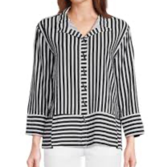 Multiples Black and White Striped Tunic, wire collar, size XL