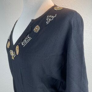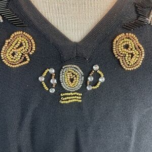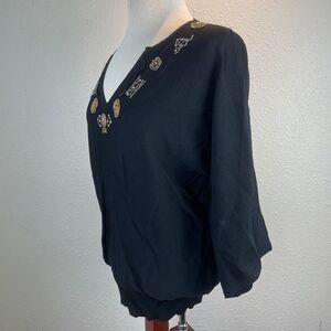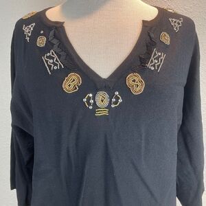 Multiples Black 3/4 Sleeve Beaded Blouse Top EUC
