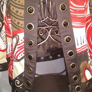 Beautiful Jacket/Office Wear by Multiples. It is Size XS. RN# 127304. GREAT DETAIL on this piece, notice the Runching on the sides and the Zippered Front. This shirt has a Great Vibe.