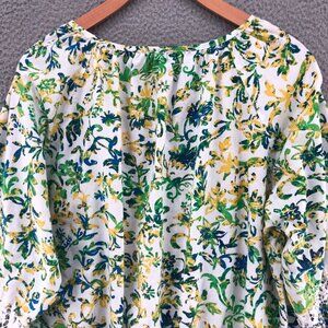 Multiples Top Womens 1X Plus Multicolor Floral Lace Blouse 3/4 Sleeve Smocked