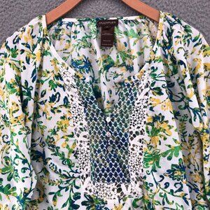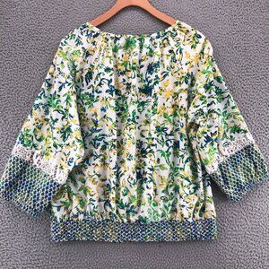 Multiples Blouse Women 1X Plus Multi Floral Crochet Lace 3/4 Sleeve Smocked Boho