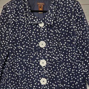 Multiples Blue and White Polka Dot Button Down Jacket