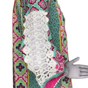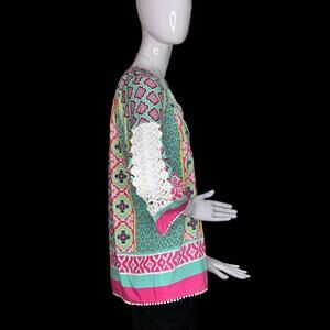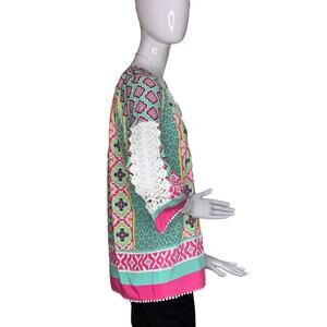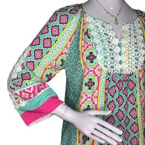 Multiples Boho Top Long Sleeve Multicolor Moroccan Print Size S 100% Ray…