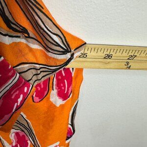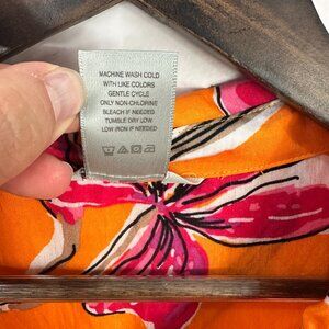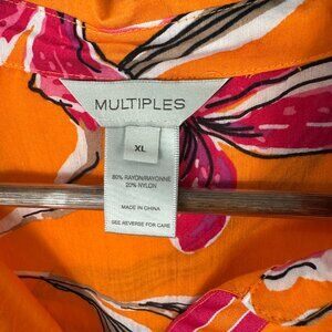 Multiples Floral Top Women XL Orange Pink Split Neck Resort Boho Tropical