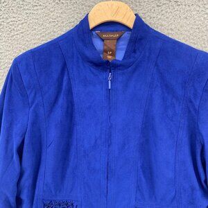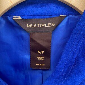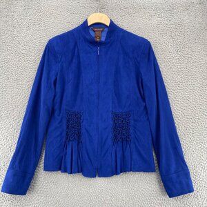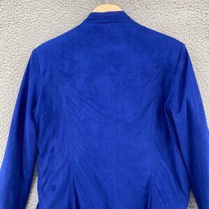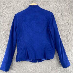 Multiples Jacket Womens Small Blue Faux Suede Full Zip Stretch Ruched Everyday
