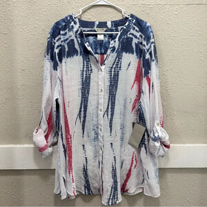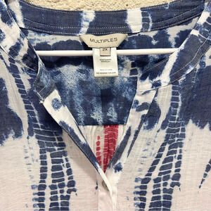 Multiples Liberty Print Button Down Tab Sleeve Button Down Top NWT 2X
