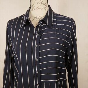 Multiples | Navy Pin Stripe Button Down Shirt | Size S