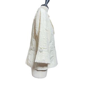 Multiples Off White Brocade 3/4 Sleeve Crinkle Jacket Size Medium