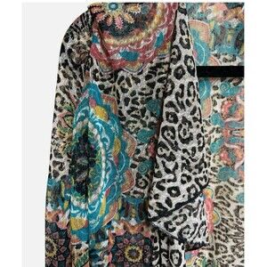 Multiples Open Sheer Cardigan Cover Up 1X Lagenlook Floral Animal Print Ruffle