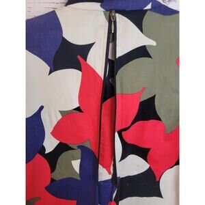 Multiples Red Floral Zip Front Relaxed Long Sleeve Jacket Women's Size Medium