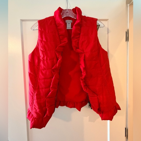Cute ruffled red vest! In new condition. Women’s size Extra Small. Zipper closure.