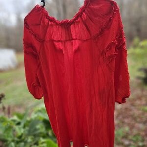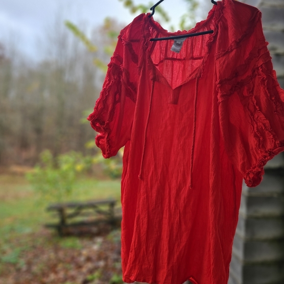 Multiples Brand. Red ruffled top. Cute for any season.