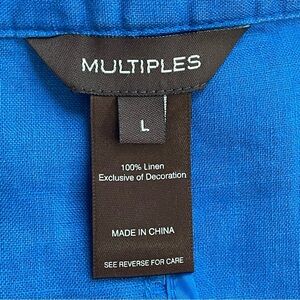 100% Linen. Shoulder pads. Button. Rear slit. 3/4 sleeve with slits. Excellent used condition