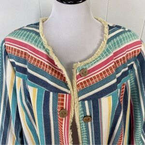 Multiples Size 1X Blazer Jacket Crochet Fringe Striped Open Front Boho Colorful