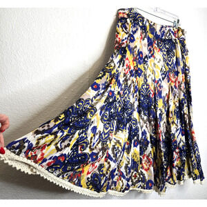 Multiples Women Midi Skirt - 14 - Blue - Yellow - Printed - 100% Cotton - Flowy - Boho - Festival - Y2K- Does Not Include Belt
