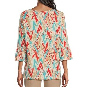 Multiples Slub Knit Abstract Print Scoop Neck 3/4 Ruffle Sleeve Top Size 2X