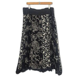 Multiples Sz 16 Full Maxi Beaded Lace Skirt Floral Print Lined Boho Lagenlook