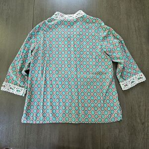 Multiples Teal Linen Blend Geometric Tunic Blouse Embroidered Size M Coastal
