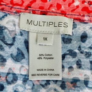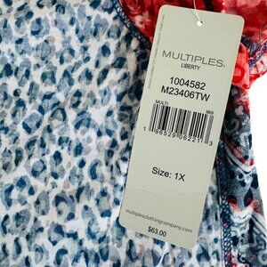 Multiples Women's Plus Size 1X Printed Burn Out Semi Sheer Multi Color T…