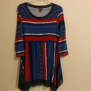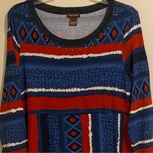 Multiples Women's Size S 3/4 Sleeve Multicolor Pullover Top Boho