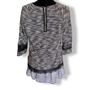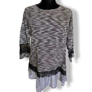 Multiples Womens Tunic Size Large Textured Lace Sweater Black Gray White Mixed