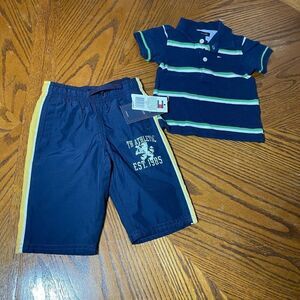 Lot of 6 baby boy clothes. Great condition, pants are brand New with tags from Tommy Hilfiger. The warm quilted button top is reversible