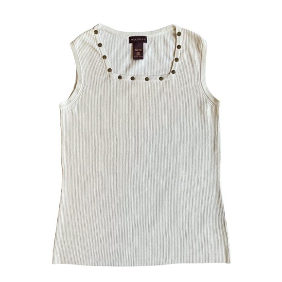 Multiples cream/ivory ribbed tank top with flat brass stud detail size PM