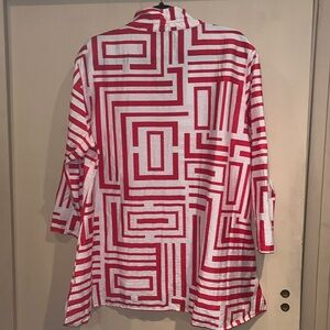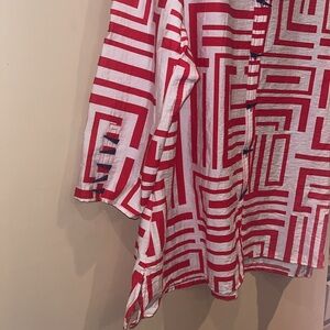 Measurements pit to pit is 24” inches and shoulder to hem is 30” inches. This line of clothing is specifically designed for those pregnant with multiple babies. Thus the name. This is a very generous size XL. Freshly washed and air dried, smoke and pet free home. This top is bold and in a nautical theme. In great preowned condition.