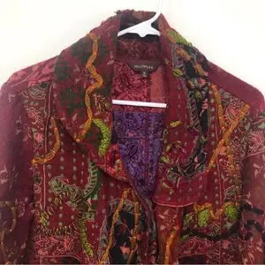Multiples Colorful Embroidered and Patterned Asymmetrical Statement Jacket