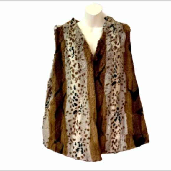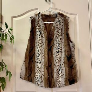 Multiples Animal Print Faux Fur Vest Lightweight w/ hook closure