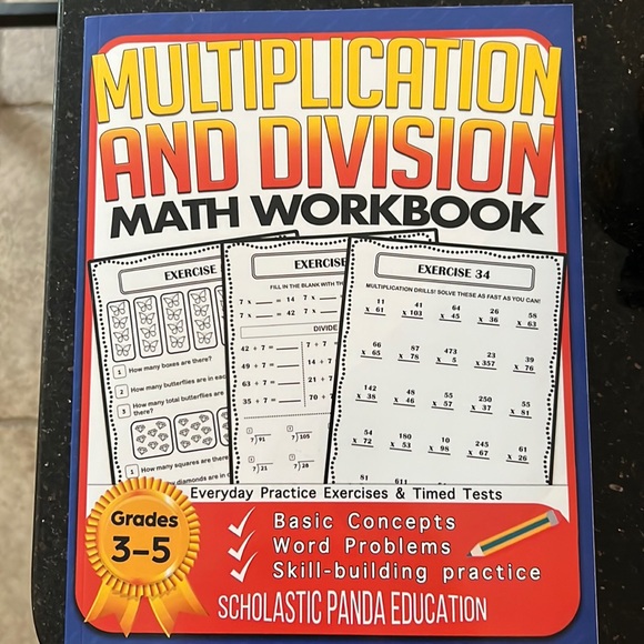 NEW! Multiplication and Math workbook. Grades 3-5. Basic concepts, word problems and Skill-building practice.