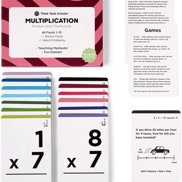 Think Tank Scholar Multiplication Flash Cards | 150 Facts: All Facts 1-12 | Pocket-Size Flash Cards | 6 Teaching Methods and 5 Fun Games