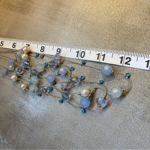 Multi stand beaded station statement necklace. Tone blues measurements are in the photos