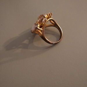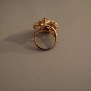 Beautiful stone (crystal, diamond, pearl like stones) on a ring! I do not know the size but I measured it at 2cm/3cm in diameter. Can be worn with many rings or just one as a statement. Either way looks really good :)