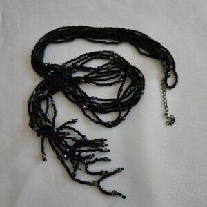 Black seed beads + 3.5mm x 5.0mm iridesent black beads