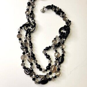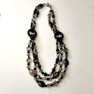 Multistrand Black Beaded Necklace Shiny Grey and Black Beaded Necklace