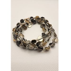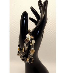 Multi-strand Bracelet with Silver & Gold Medallions. Very cute fashion bracelet that stretches. Brand unknown.